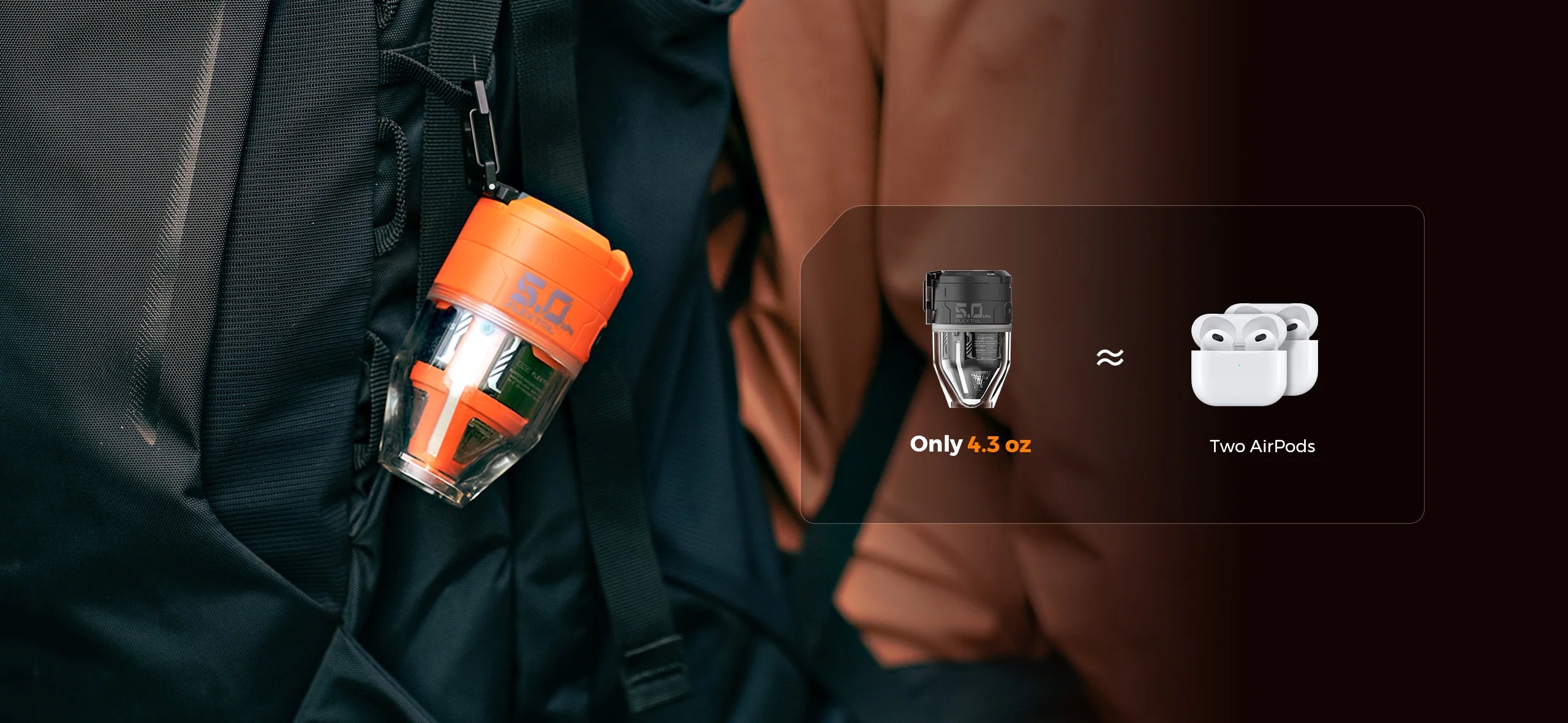 - Lightweight – USB-C rechargeable air pump & lantern that weighs approx 122gms;